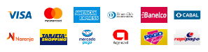 Podés pagar con tarjeta de crédito, débito o Mercado Pago.
